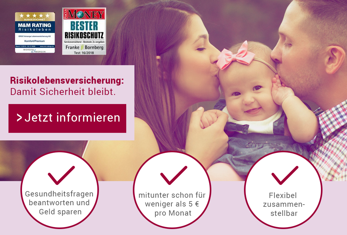 Nutzen Sie die Risikolebensversicherung der ERGO, einem der weltweit führenden und kompetentesten Anbieter, wenn es um das Wohlbefinden und Sicherheit der Familie geht.